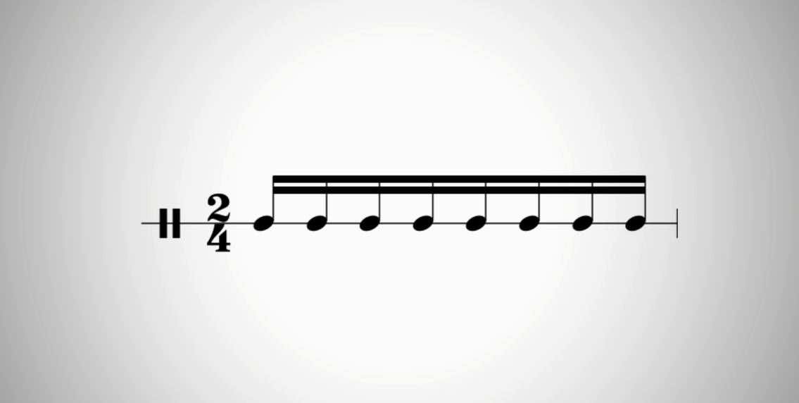 Рассмотрим на примере. Этот ритмический рисунок прочитать довольно легко, и его мог написать человек, не знакомый с правилами группировки.
