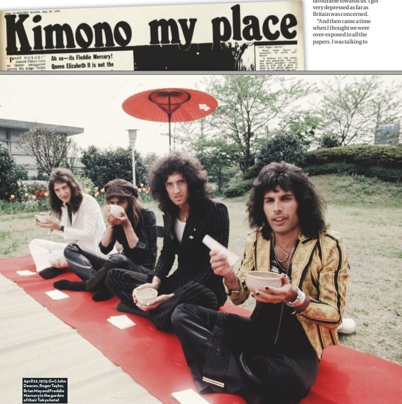 Певец был удивлен, увидев, что местные танцовщицы выступают в свадебных кимоно под ритмы недавнего хита «Killer Queen». «Мы кричали – «Снимайте их!», имея в виду кимоно, — вспоминал Фредди. — Наш переводчик спросил, что это значит, а когда мы объяснили, они попадали со смеху и перевели это на японский». Вскоре японская публика Queen освоила и другие экспрессивные выкрики.