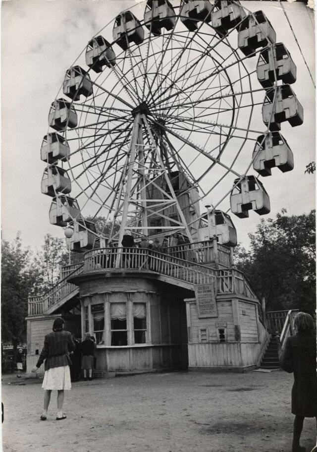 Фотограф Роберт КапаБармен готовит коктейль, Киев, 1947 год. Фотограф Роберт КапаВид на колесо обозрения в Парке культуры и отдыха имени Горького, Москва, 1947 год. Фотограф Роберт Капа