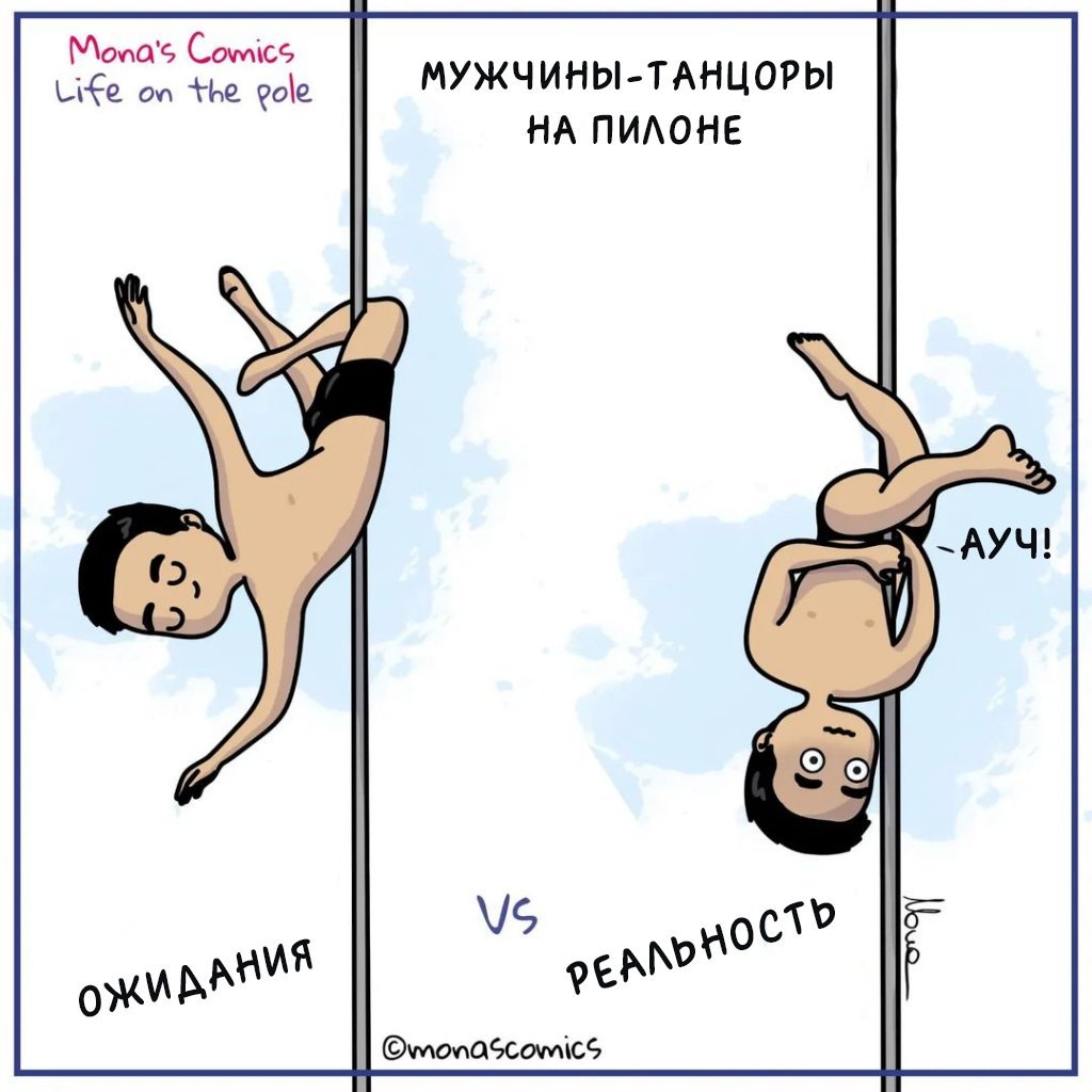 Она сделала это, чтобы преодолеть их, а также просто для смеха. В результате она смогла найти единомышленников, так как многие танцоры столкнулись с теми же проблемами.Мне нравится художественный стиль, в котором рисует Александра. Он приятен для глаз и прост для понимания. Через карикатуры артист передает простую и легкую информацию, понятную каждому, кто так или иначе связан с pole dance. А тем, кому пилон чужой, мультфильмы могут просто показаться забавными и просто поднять настроение.