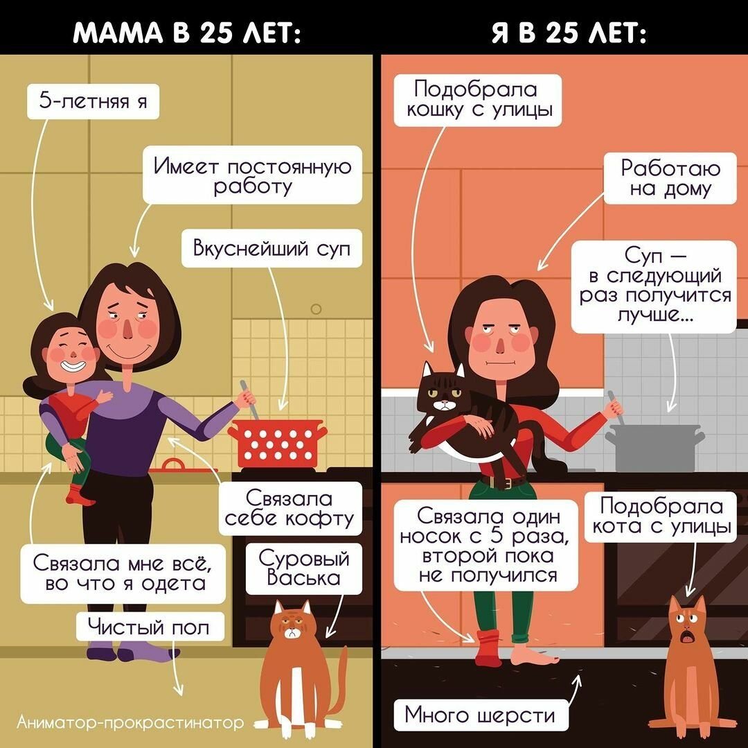 Художница рассказала, что вдохновение для своих мультфильмов находит в повседневной жизни. Поскольку художница рисует карикатуры о собственной жизни, в них периодически появляются люди из ее окружения, с которыми связаны те или иные события.Напишите в комментариях свое мнение о мультфильмах «Аниматор-Прокрастинатор», не забудьте написать, какой из них вам понравился больше всего. Буду признателен, если вам понравится этот пост и вы поделитесь им в своих социальных сетях. А если вы еще не подписаны на сайт, то вперед и приобретайте, тем более, что подписчики всегда первыми узнают о новом материале, а он появляется каждый день.