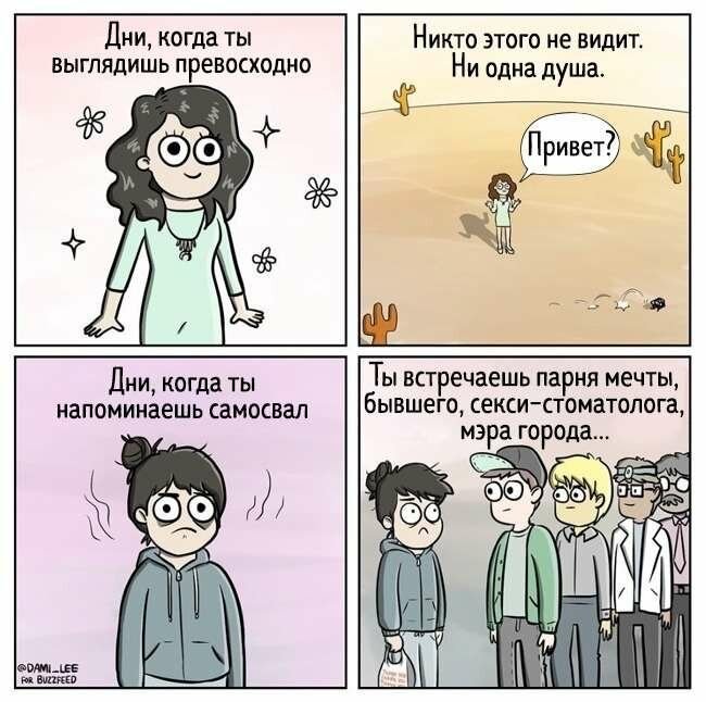 Почти 350 000 человек со всего мира уже полюбили творчество Дами Ли за ее привлекательный мультяшный стиль, наполненный остроумными шутками о знакомых ситуациях и вещах. Уверен, вам тоже понравятся эти комиксы и вы сможете найти в них что-то о себе.